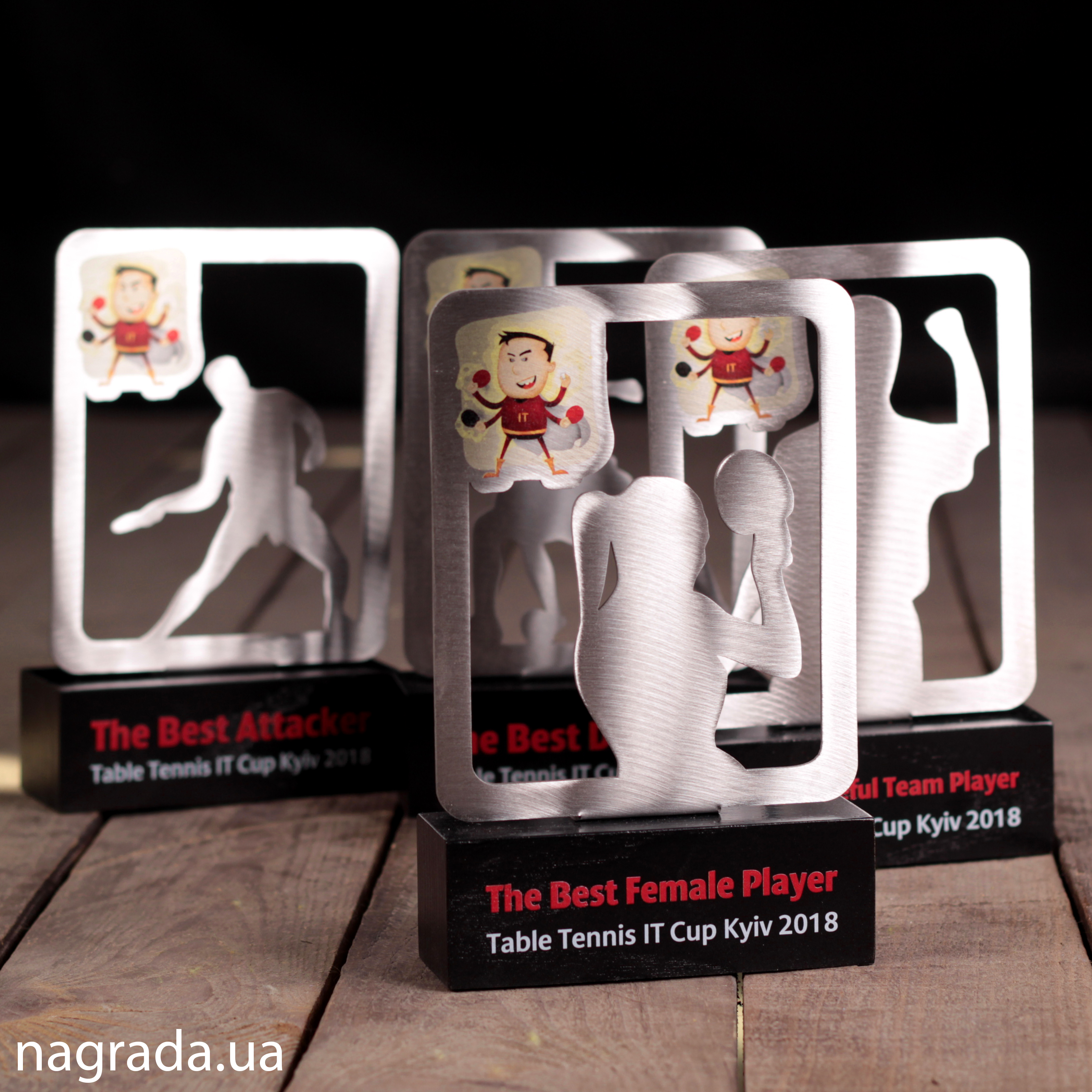 Наші металеві елементи можуть бути хромованими, матовими або з гравіюванням, що додає виробам витонченості. Дерев’яна основа або вставки надають нагороді теплоти, естетичної глибини та відчуття ексклюзивності. Разом вони створюють образ преміум-відзнаки, яку з гордістю приймають переможці, партнери чи учасники заходу.