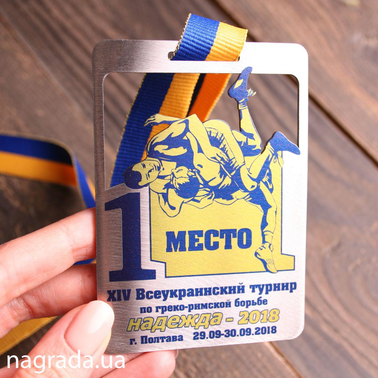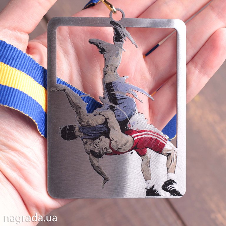 Медаль "Греко-римська боротьба" зі сталі з з кольоровим друком