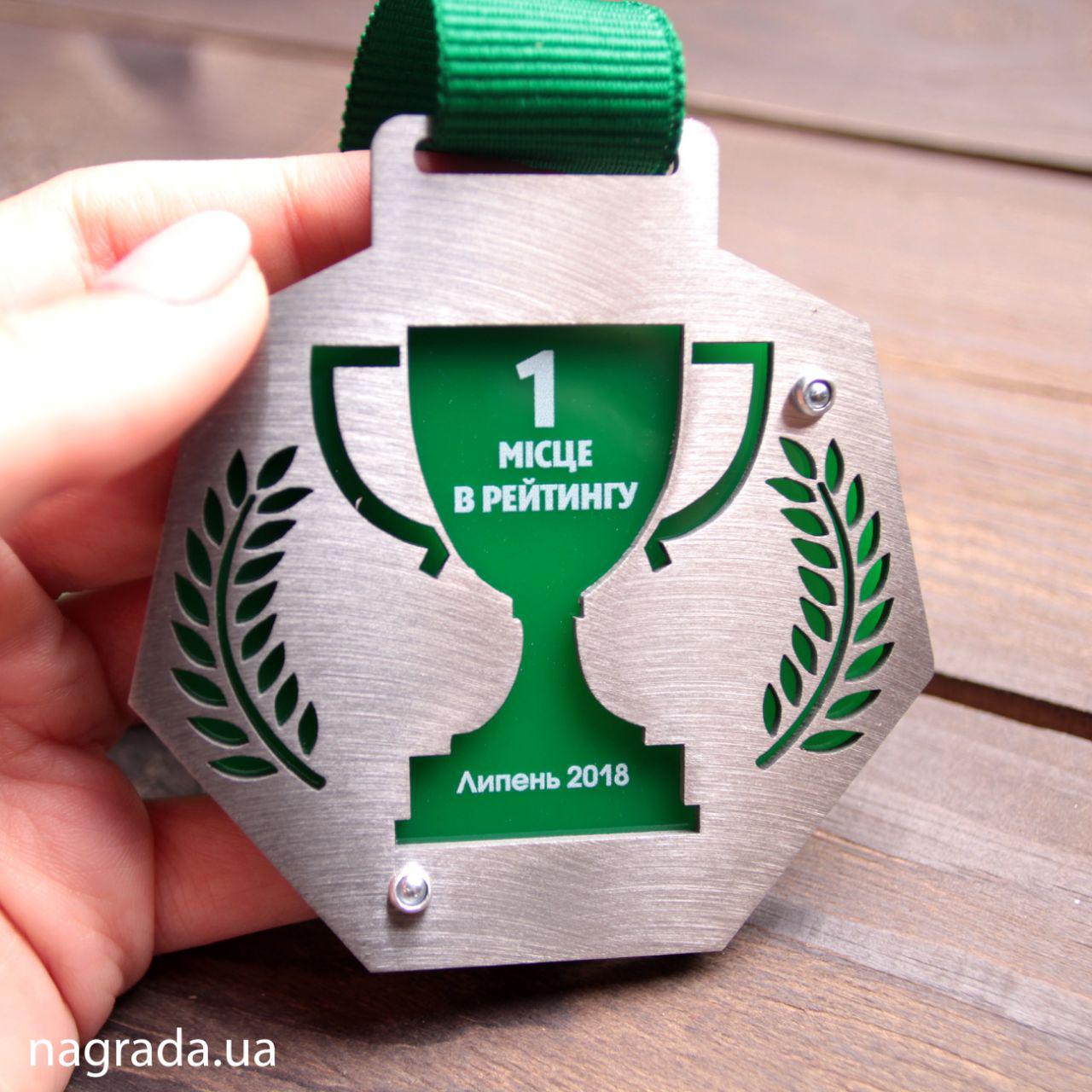 Медаль семикутна зі сталі і акрилу