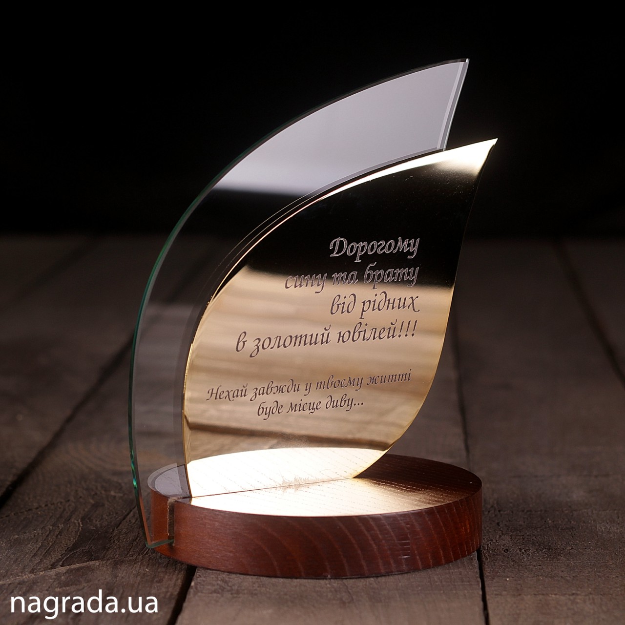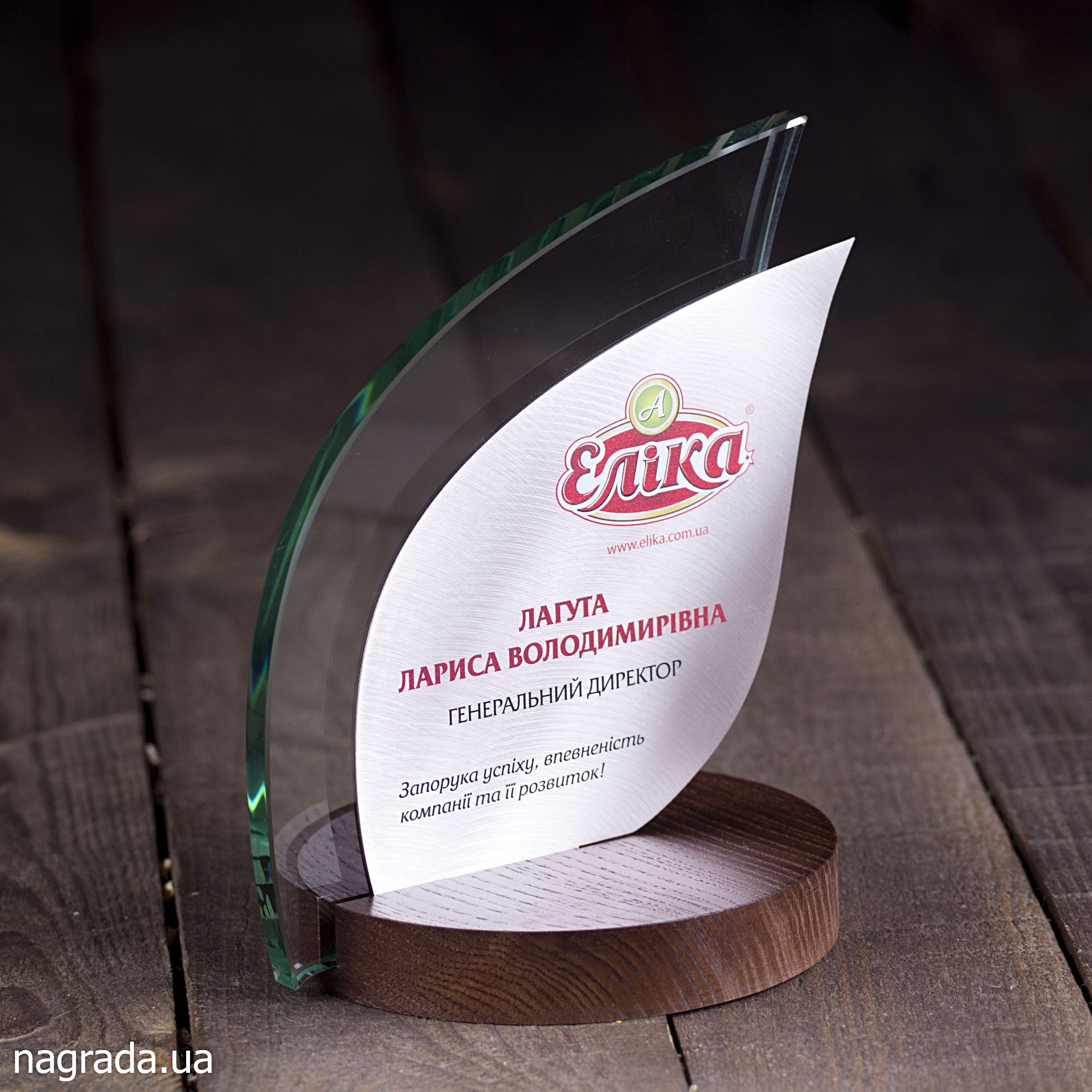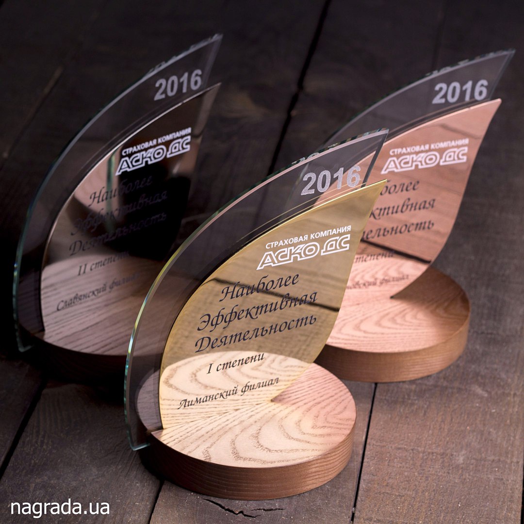 Нагорода Листок. Скло, дерево, метал