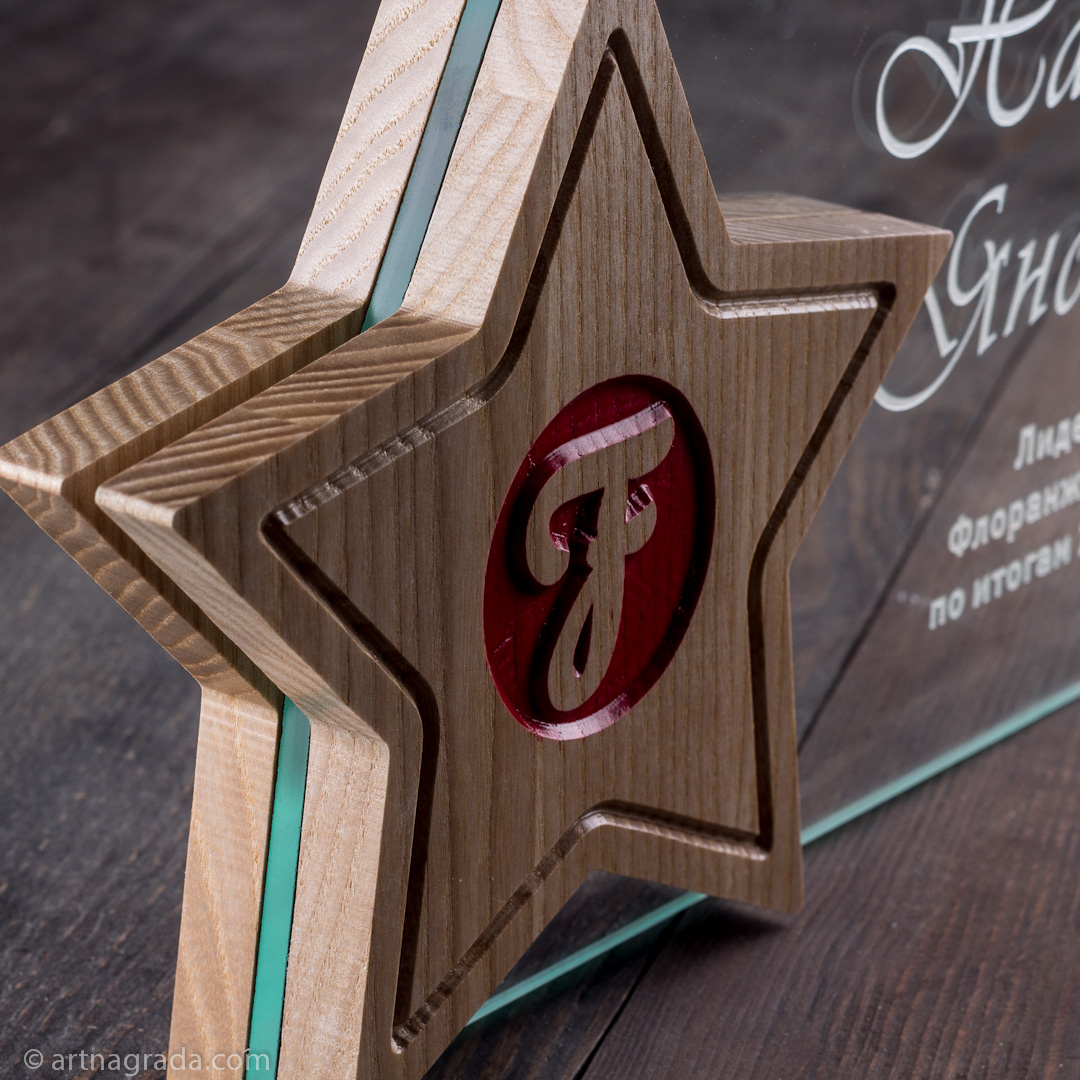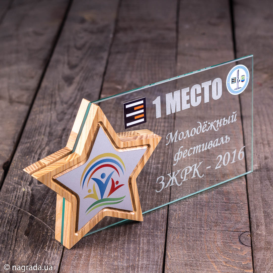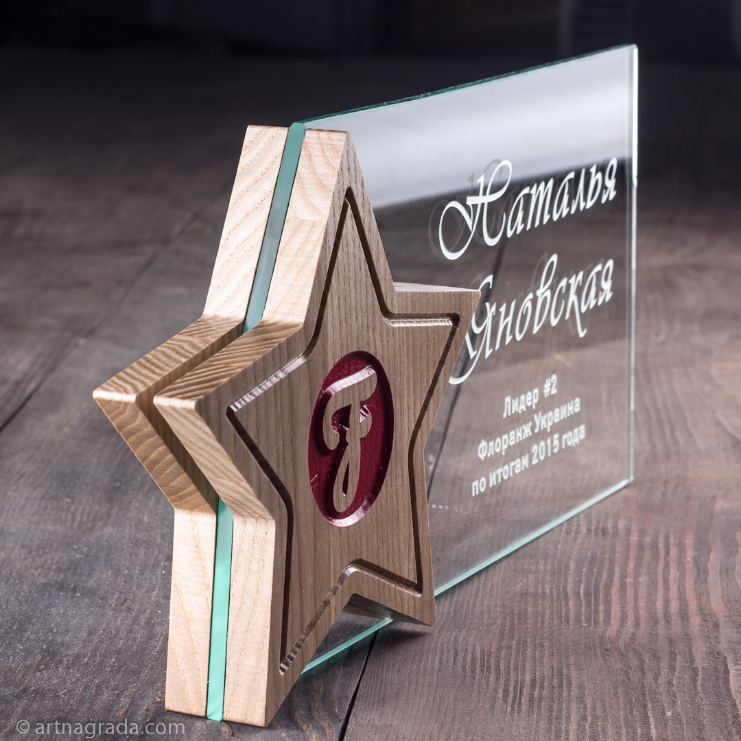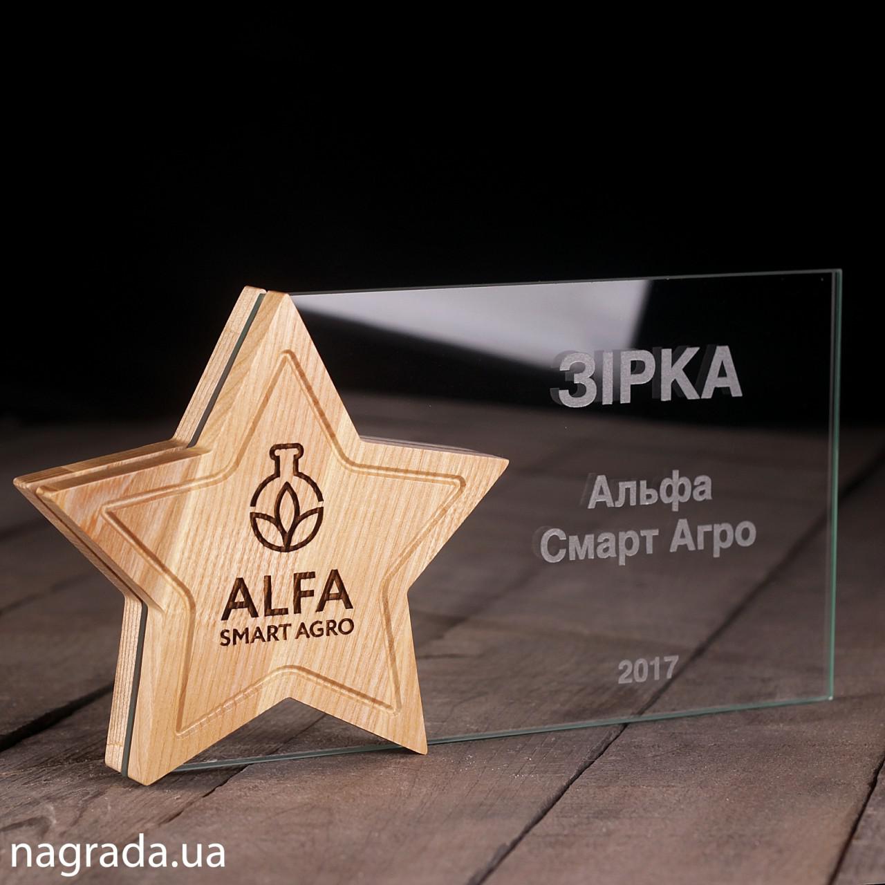 Приз зірка з дерева та скла