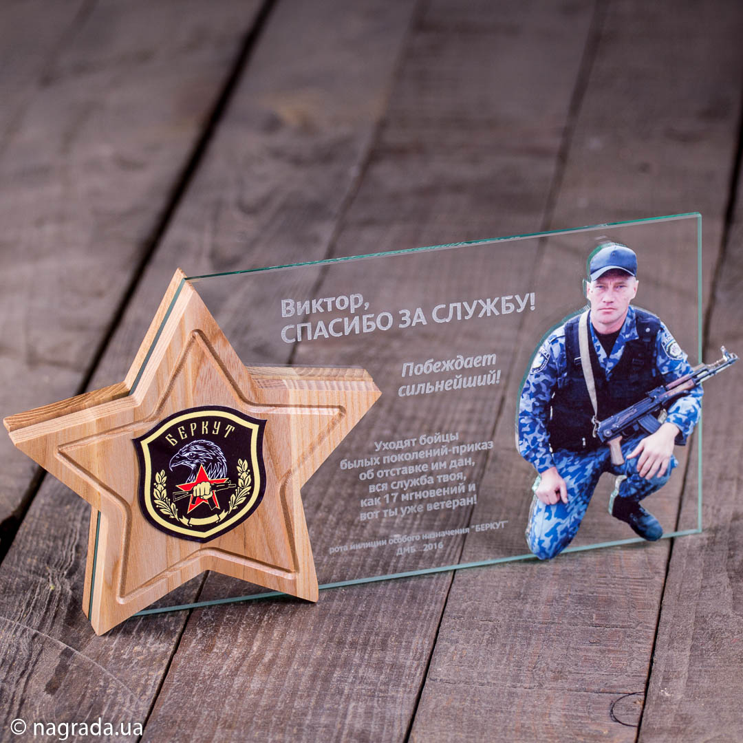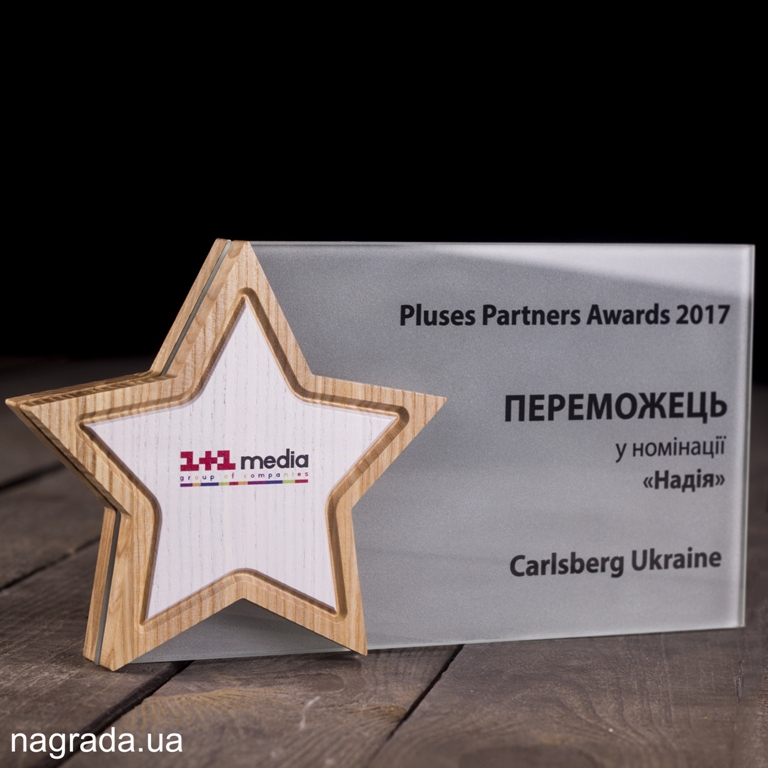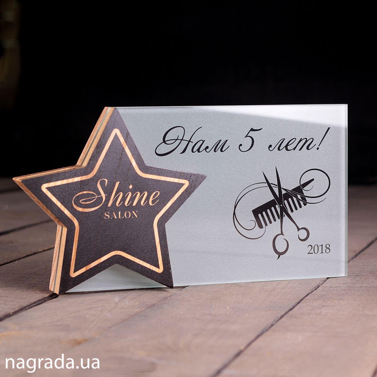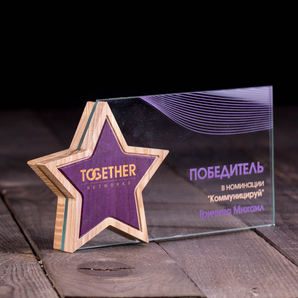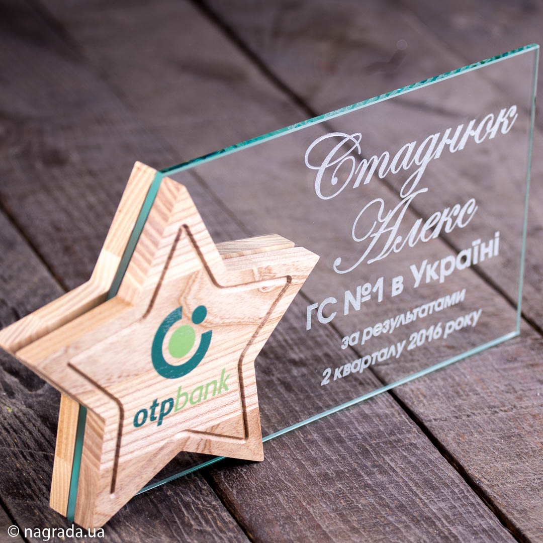 Приз зірка з дерева та скла